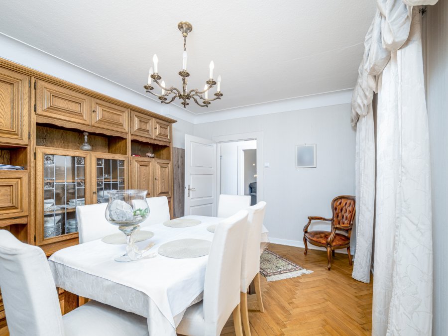 Au RDC : séjour, salle à manger, cuisine équipée, couloir;