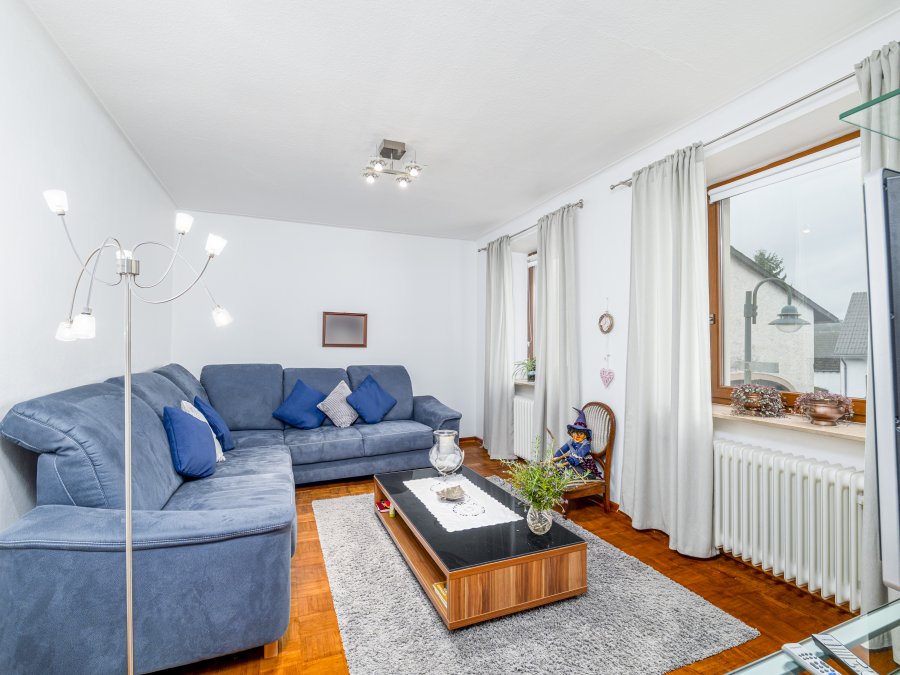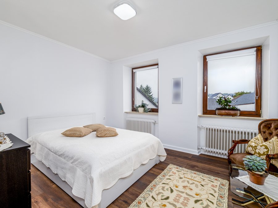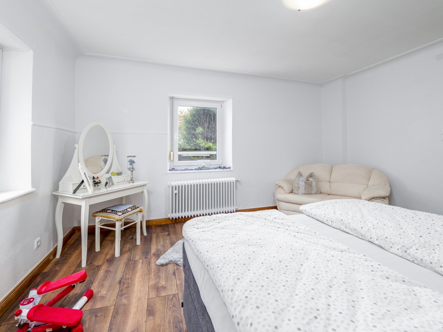 Properties Partners vous propose à la vente en Allemagne une maison individuelle de 215m² habitable avec 3 chambres, très bien entretenue et rénovée et qui dispose d'une grange attenante. Elle se situe dans le village de Rehlingen, un quartier de la commune de Nittel; la propriété est composée de deux parcelles : une où se situe la maison, qui mesure environ 5,21 ares et, l'autre parcelle d'environ 0,63 ares qui est destinée aux deux emplacements extérieurs.Le bien est composé comme de suite :