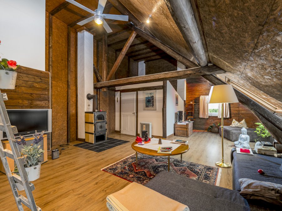 Au dernier étage en comble : une grande pièce, chambre;