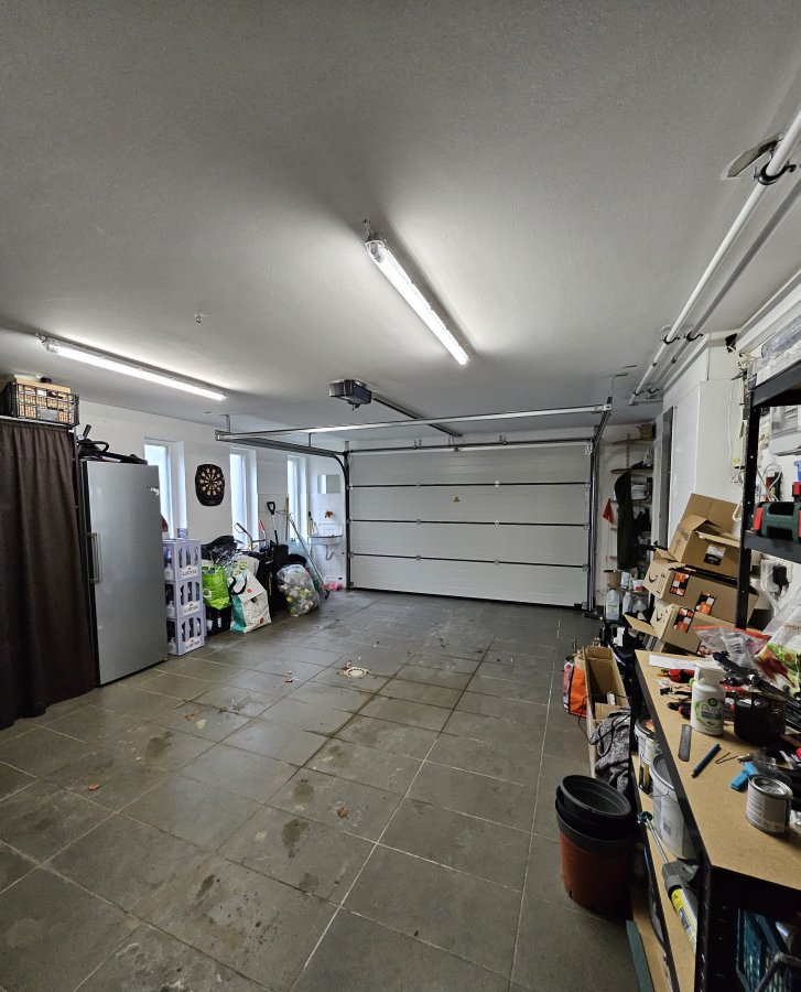 Au rez-de-chaussée : vous trouvez le hall d'entrée, un grand garage de 30 m² et une buanderie et un accès à une partie de jardin avec un puits avec des eaux de source.